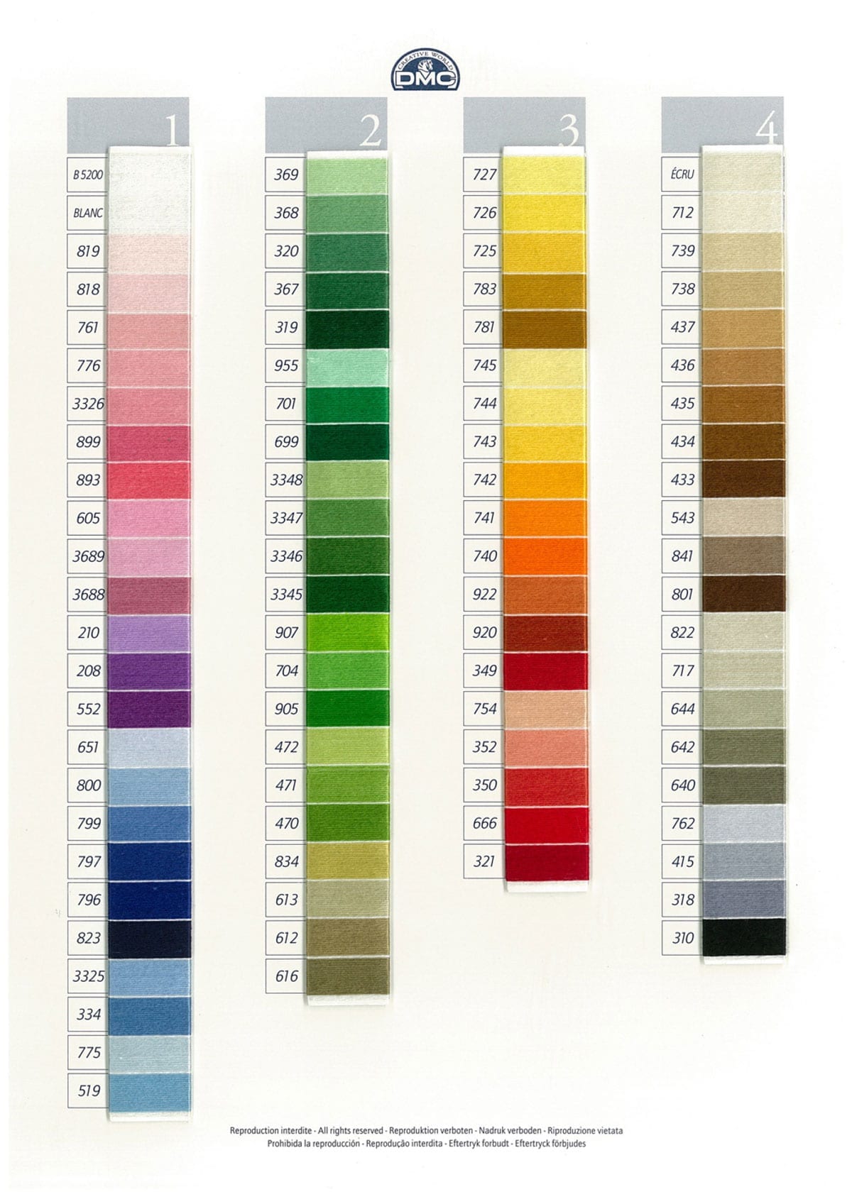 DMC Floche is a twisted thread made from the finest long fiber cotton, mercerized to create a beautiful finish. This superior quality thread is especially suited for fine embroidery. DMC Floche is comprised of 4 non-divisible strands in size 16 thread, each strand equals 2 strands of DMC Floss. During the manufacturing process, the cotton is combed, singed by flamed and mercerized creating its beautiful finish. The end result does not knot, kink or fluff and is soft and gentle to the touch.